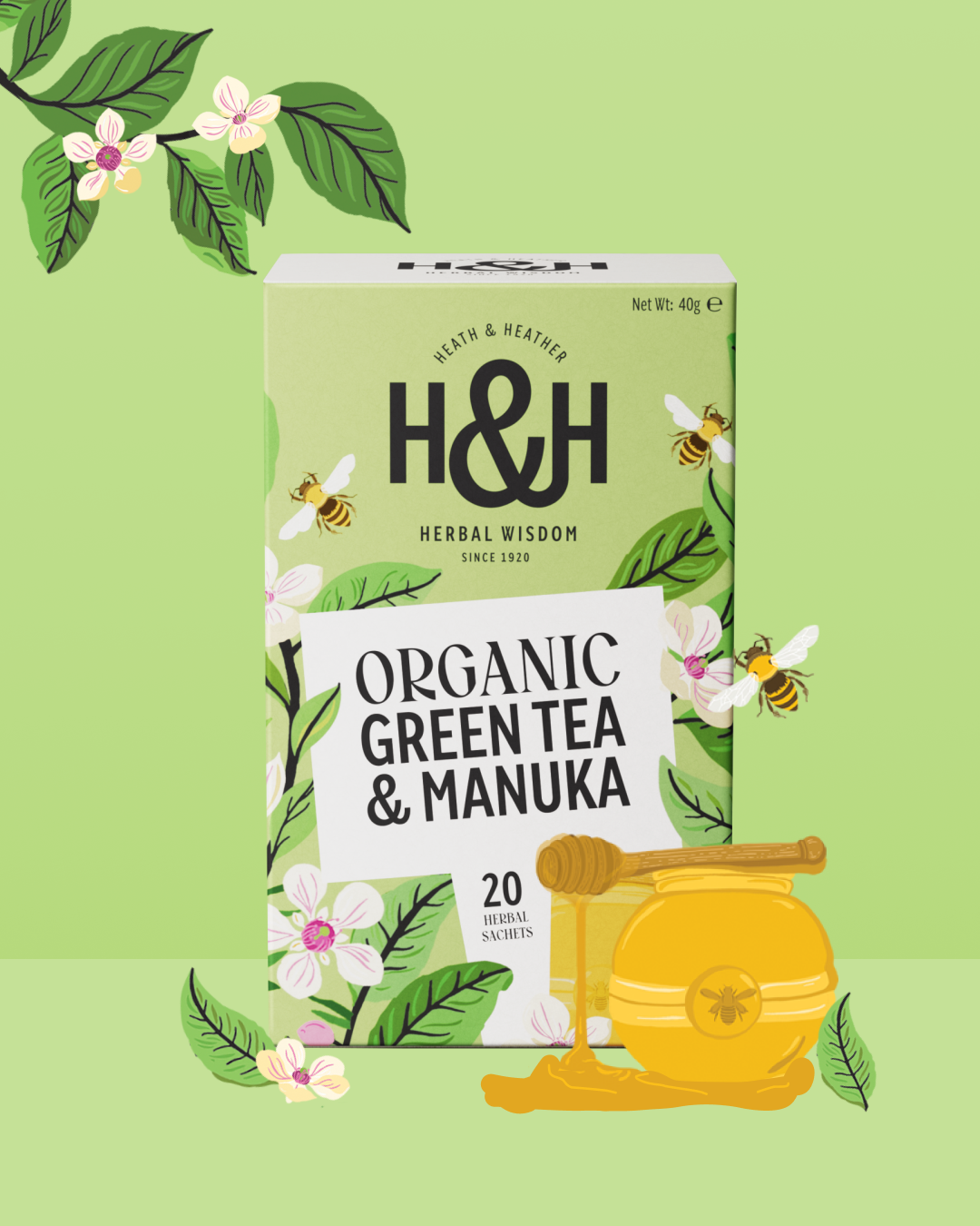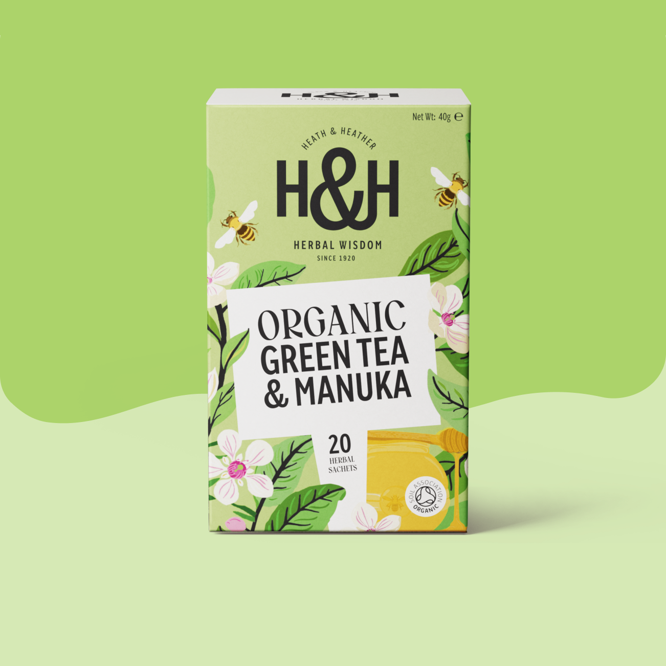 Heath & Heather Organic Green Tea with Manuka has been expertly blended for a light, delicate taste with soothingly rich tones.